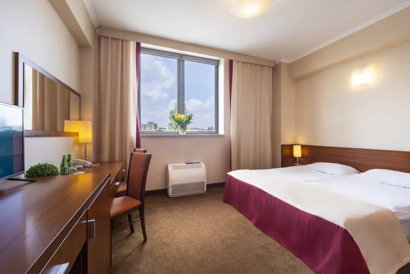 غرفة وظيفية مع سريرين مفردين يمكن تحويلهما إلى سرير مزدوج عند الطلب